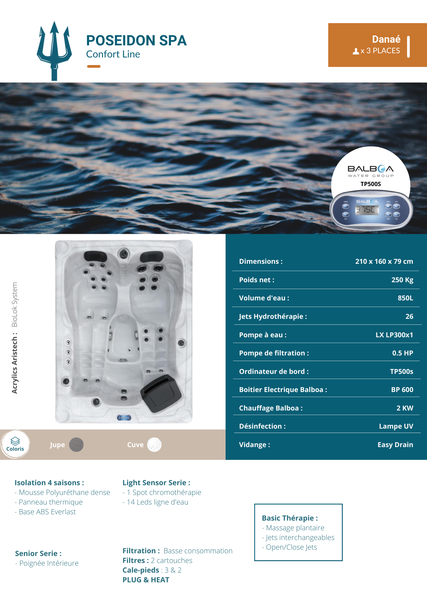 Si vous voulez acheter un spa 3 personnes pas cher, le modèle Danaé est pile ce qu’il vous faut.